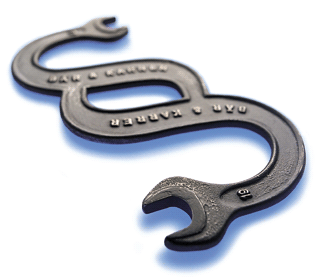 BAER & KARRER Die Nachbildung eines Schraubenschlüssels in Paragraphenform nimmt Bezug auf die Tätigkeit der Anwaltskanzlei für das Gewerbe. Entstanden in Zusammenarbeit mit Metzger, Lehner, Briccola (Konzeption) und Daniel Valance (Fotografie).